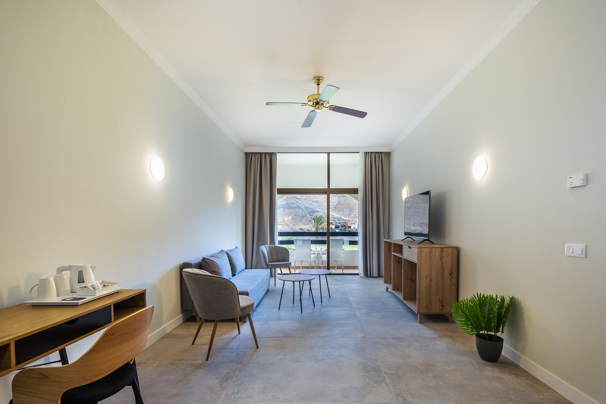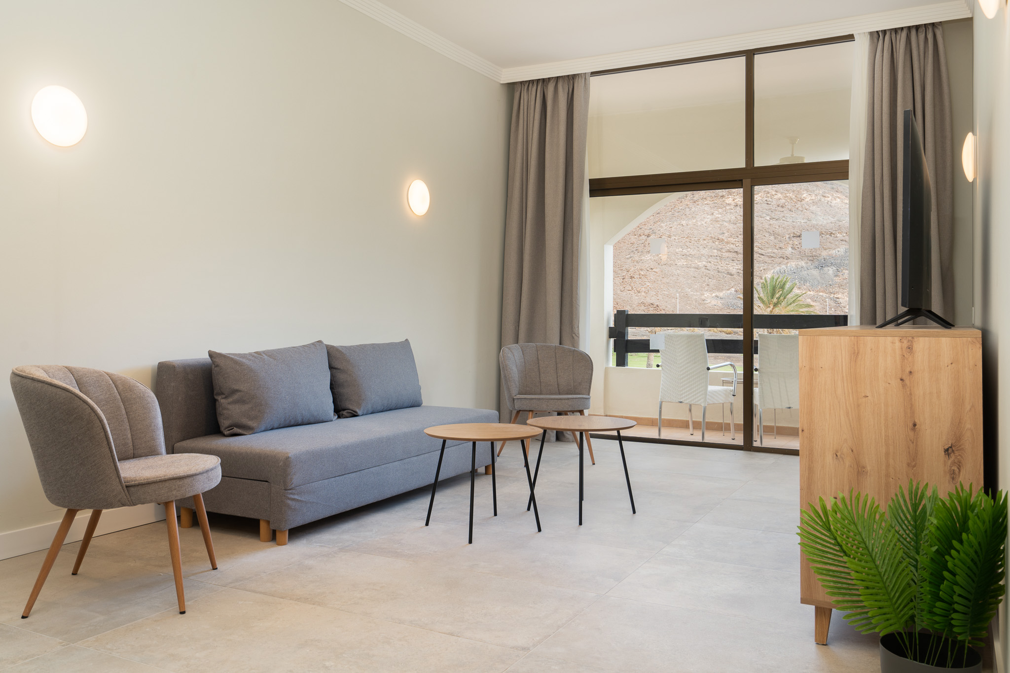 Exclusividad y amplitud en la Familiar Deluxe. Disfruta de un salón independiente con televisión, sofá y mesa de comedor, además de un dormitorio con cama doble y armario empotrado. El baño cuenta con una moderna ducha. Ideal para quienes buscan el máximo confort. ¡Haz de tu estancia un lujo!